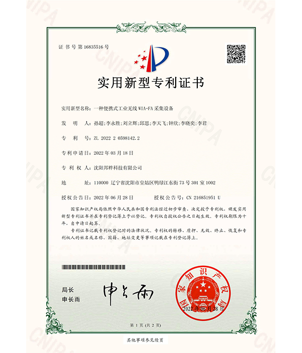實(shí)用新型專利證書(shū)